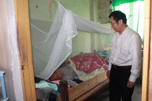 圖為我院工會(huì)主席董保健(右)在慰問困難職工